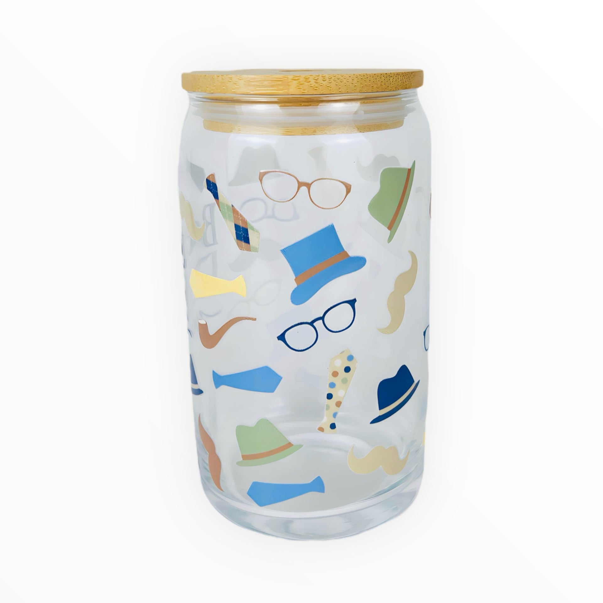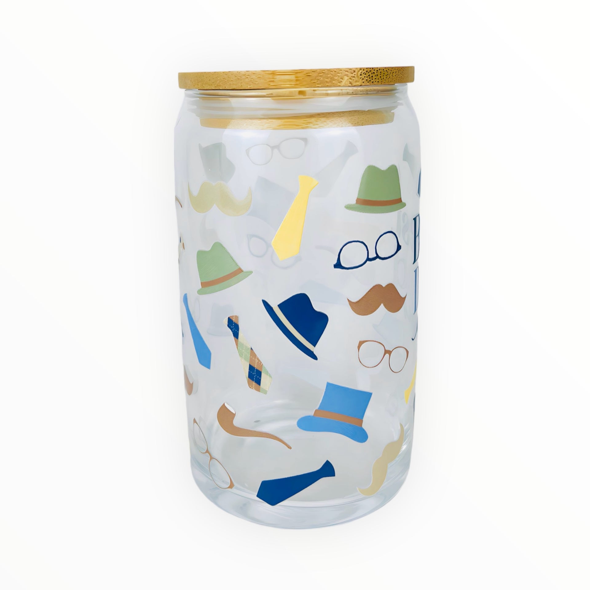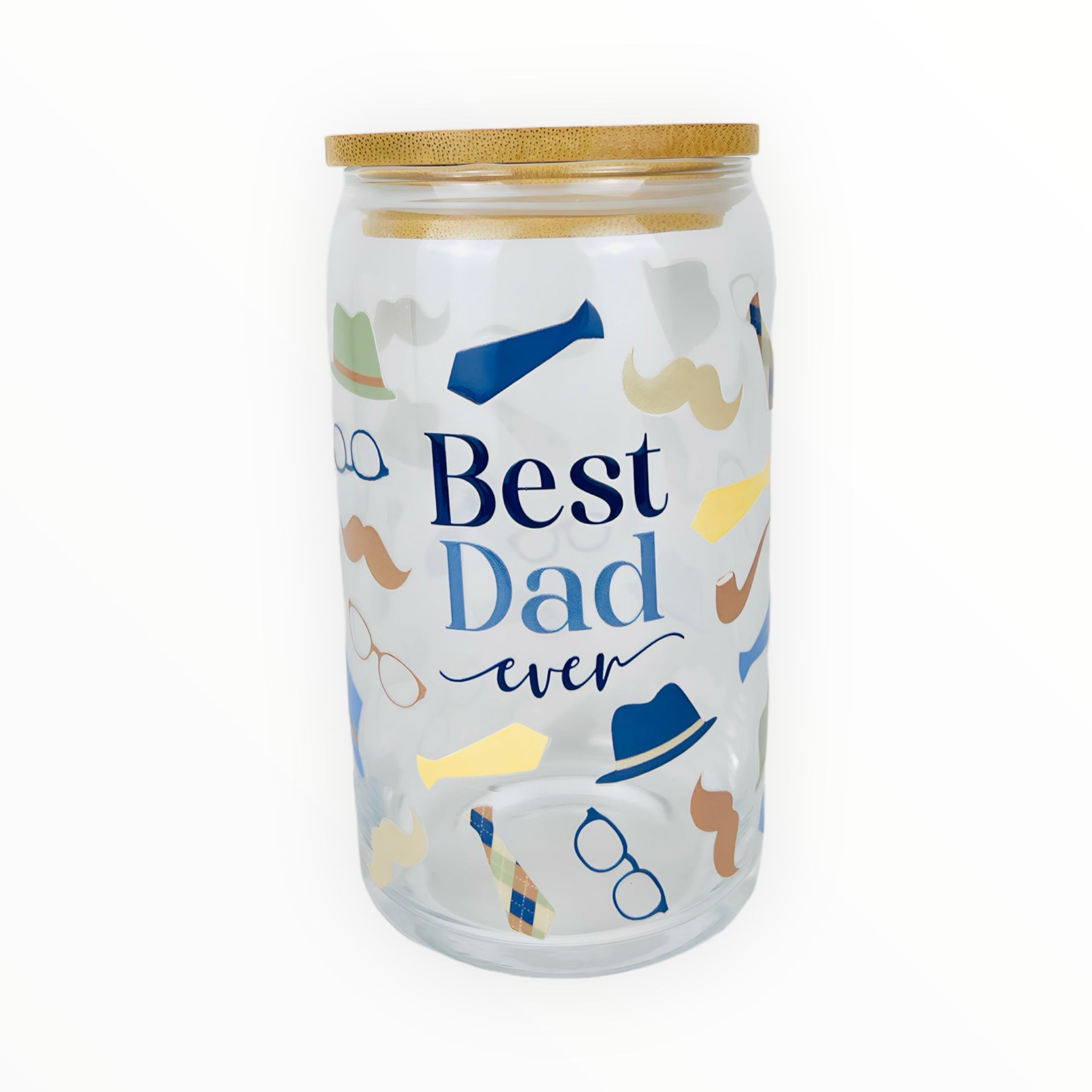 Glass Cup Best Dad Ever 16 oz with two glass strows